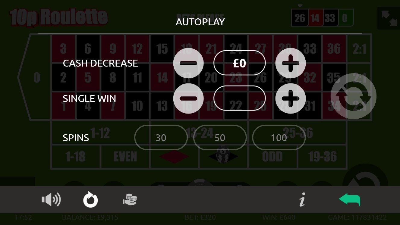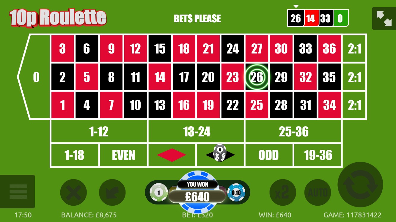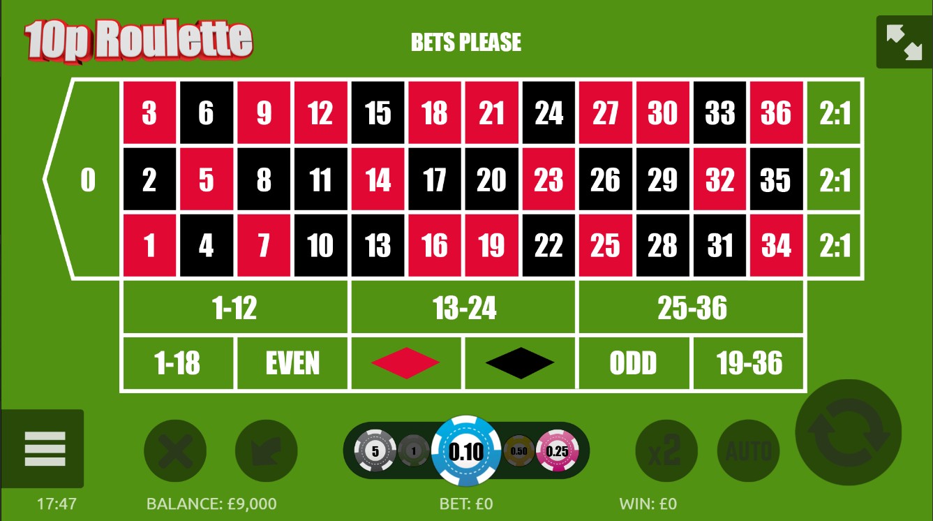 It's easy to get started. When playing the 10P Roulette (G. Slot), chip controls are the most important part. You can choose from values as low as £0.10 and as high as £1 depending on the table limits. Then you can build your coverage by tapping or clicking on numbers or bet zones. There is a quick undo button if you need to make changes to your positions before spinning.