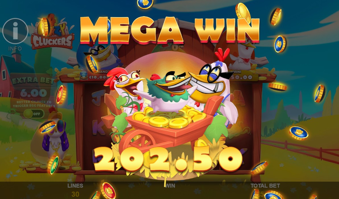 When you leave the feature, a total is shown along with the stake that was used to help you understand the result. The frames in 4 Crazy Cluckers Slot are clean so that the screen doesn't get too crowded, and the animations are short enough to keep the game moving. Although streaks are always possible, some players say that the frequency of triggers feels steady over time. On occasion, a retrigger can take a round further than expected when the conditions are right.