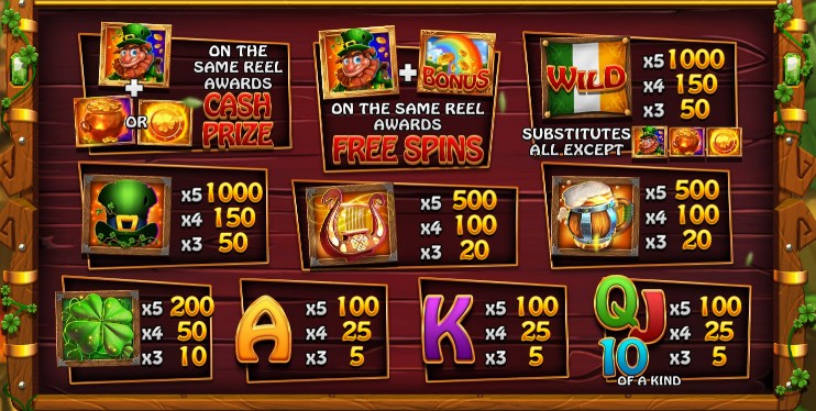 There are then wilds and scatters on top of this set in the 5 Pots O' Riches Slot to get to the bonus features and make substitutions. Regular three-of-a-kind wins are still worth something, but four- and five-of-a-kind wins are worth the most. This is because payouts are based on the type and number of symbols. The paytable seems to try to be clear, and the 5 Pots O' Riches Slot shows you the exact returns at the stake you choose in the information panel. Here is a general sketch of how values change as you move from one category to the next.