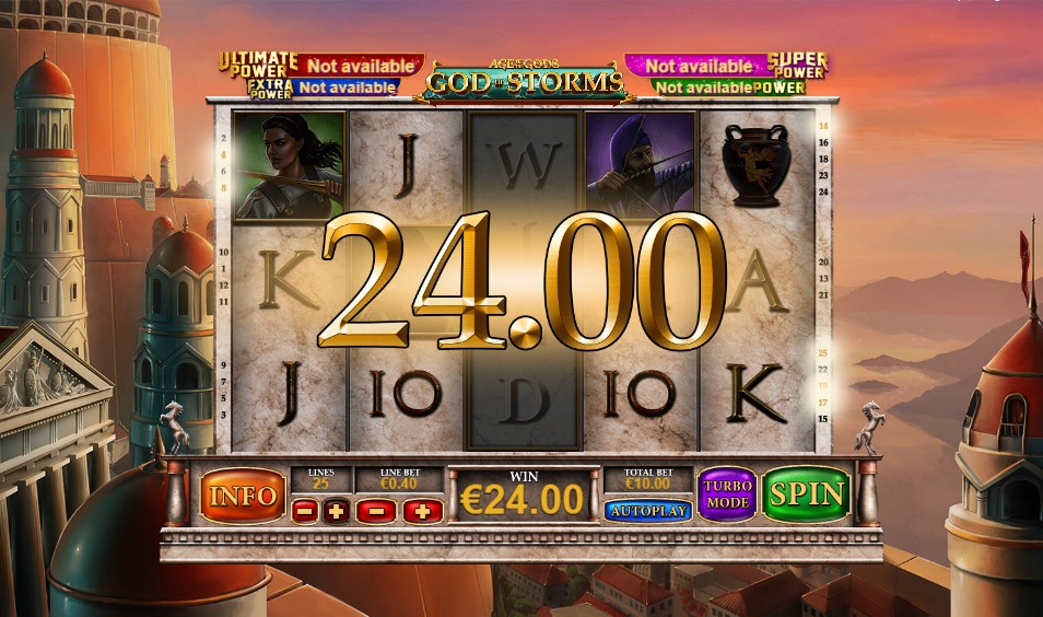 In order to play Age of the Gods: God of Storms Slot, you just need to follow these simple steps. Pick an amount to bet from the range of limits, make sure the 25 paylines stay in place, and then spin. You can look at payline information in the "Info" panel, which also shows you how stacked symbols can appear in more than one place on a reel. To make things easier, depending on where you live, autoplay and turbo options may be available. These let you set a faster rhythm or do nothing while you listen. When the respin feature starts, it makes sense to keep an eye on your balance because multiplier steps can quickly change the results compared to normal base spins.