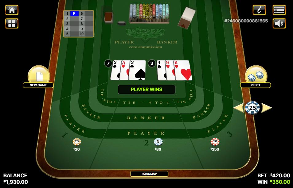 - Set an autoplay block with a stop condition, like a maximum number of losses or wins, or use the spin button to control the game by hand. Since the core pattern takes a few spins to reveal its rhythm, American Baccarat Zero Commission rewards players who keep a steady pace. Quick spin can make it hard to tell when to stop spinning, so don't use it until you know how the game is supposed to flow.