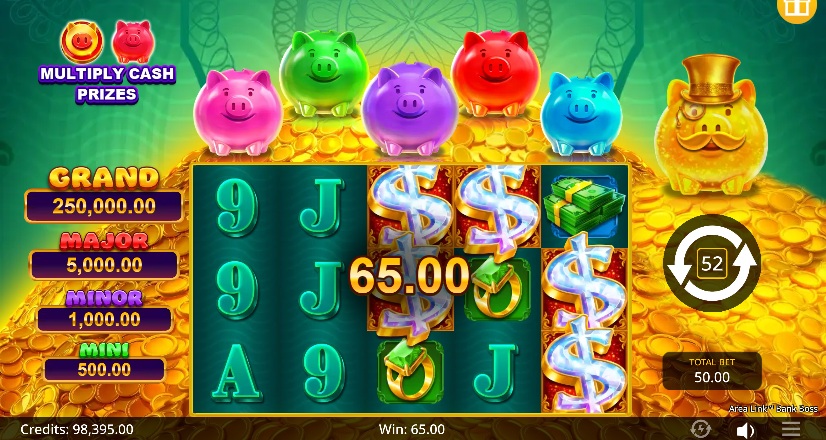 Developed by SpinPlay Games (Games Global), Area Link Bank Boss targets players who enjoy hold-and-win mechanics with layered jackpots. Expect high volatility that can deliver extended dry stretches punctuated by sharp, feature-led payouts. RTP configurations vary by market, with a top setting around the mid‑96% mark, and a hit rate tuned for regular line wins to sustain momentum. The bonus suite folds in free spins and cash symbol collections alongside fixed Mini, Major, Maxi, and Grand prizes, culminating in a max win potential around the five-figure multiple of your stake.