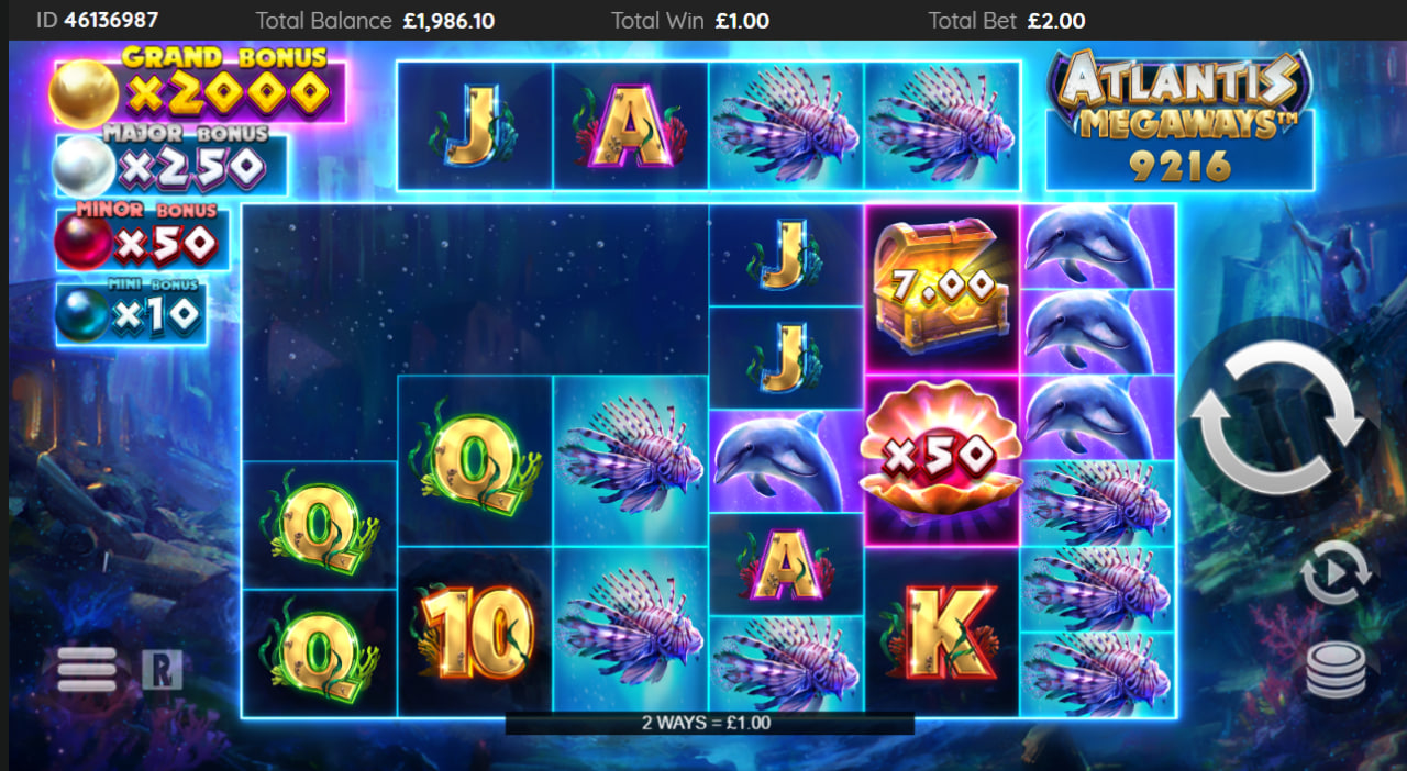 - You don't have to choose paylines because the Atlantis Megaways Slot figures out ways to win on the fly.