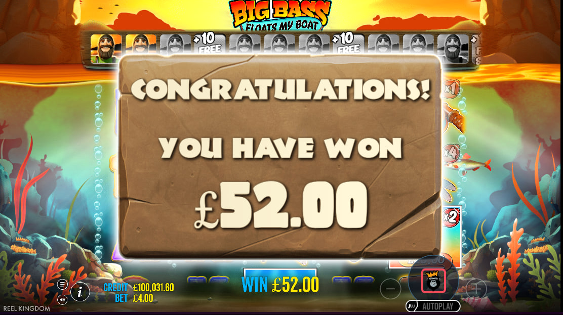Therefore, Big Bass Floats My Boat Slot is best for players who don't mind swingy sessions and would rather have a higher top end potential. Payouts for line wins are spread out pretty evenly, but big wins come from collecting multiple fisherman and getting multipliers during the bonus.