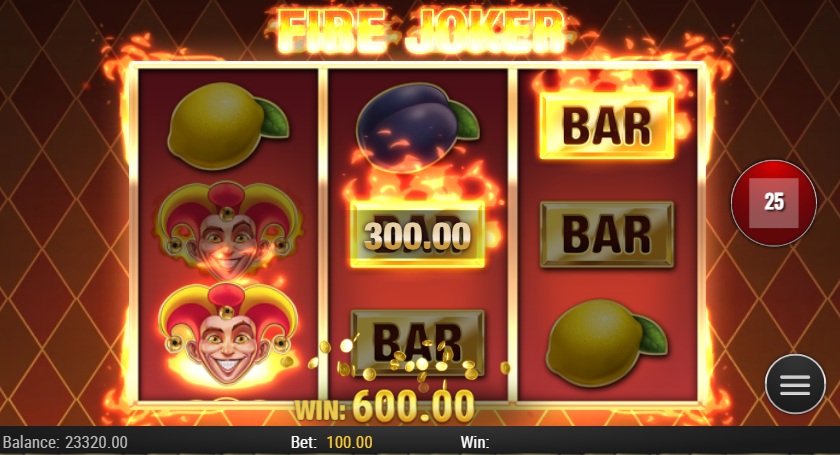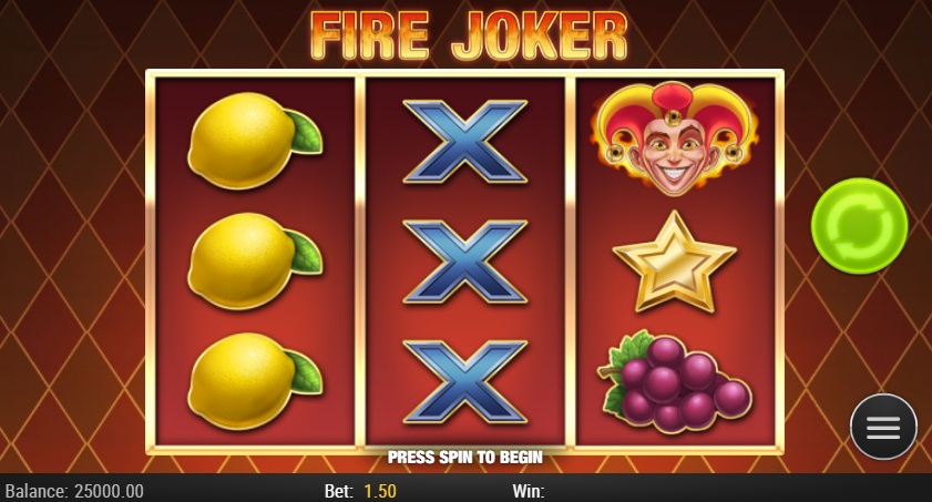 - The Fire Joker Slot has a fixed 5 line layout, so to set it up, you just need to choose a stake and press "spin."