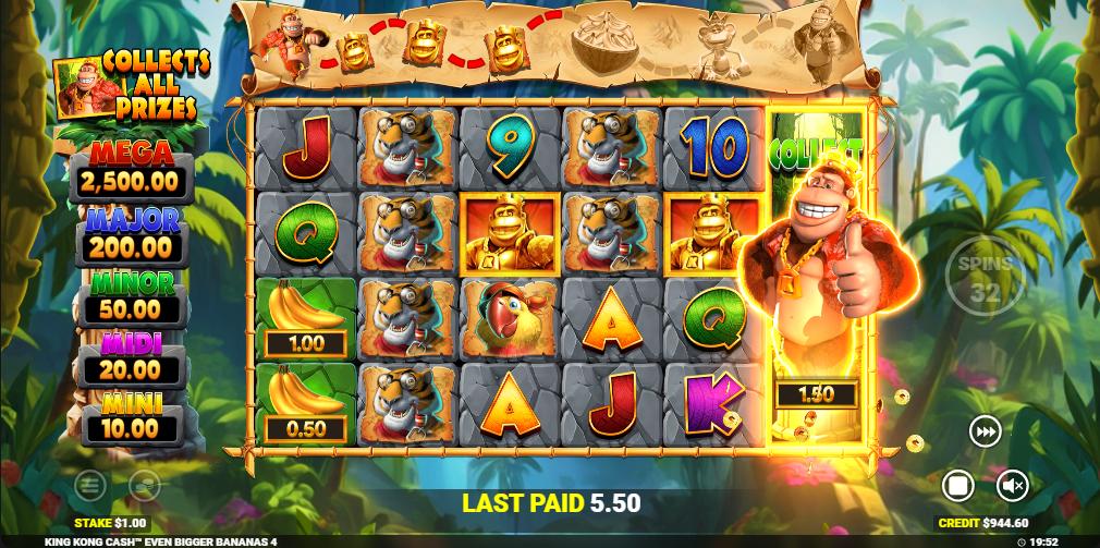 - Fisherman collect feature in free spins with retriggers
