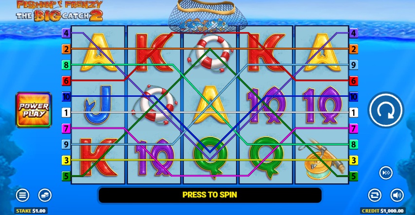 Up to 10 fixed paylines in The Fishin' Frenzy: The Big Catch 2 Slot pay from left to right. When the fisherman symbol lands on the same spin during features or certain states, it turns into a fish cash symbol and gives you a line win. During key phases, the fisherman fills in your total with the values written on fish-shaped symbols. These values are easy to see in Fishin' Frenzy: The Big Catch 2, so it's always clear when a single collect can change the outcome of a round. As the Big Catch upgrade path plays out and more free spins are triggered, this is often where the big moments happen.