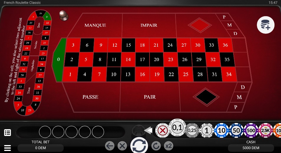 The French Roulette Classic learning curve isn't very steep, so a short time of practice is usually all you need to get the hang of inside vs. outside bets, odds, and how to move around the layout.