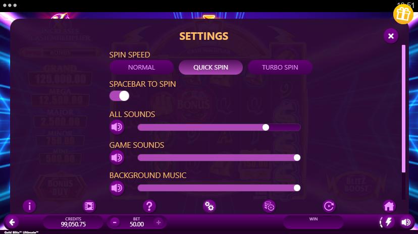 - Check the help panel to see if the displayed RTP matches the RTP in your area before you start playing the Gold Blitz Slot.