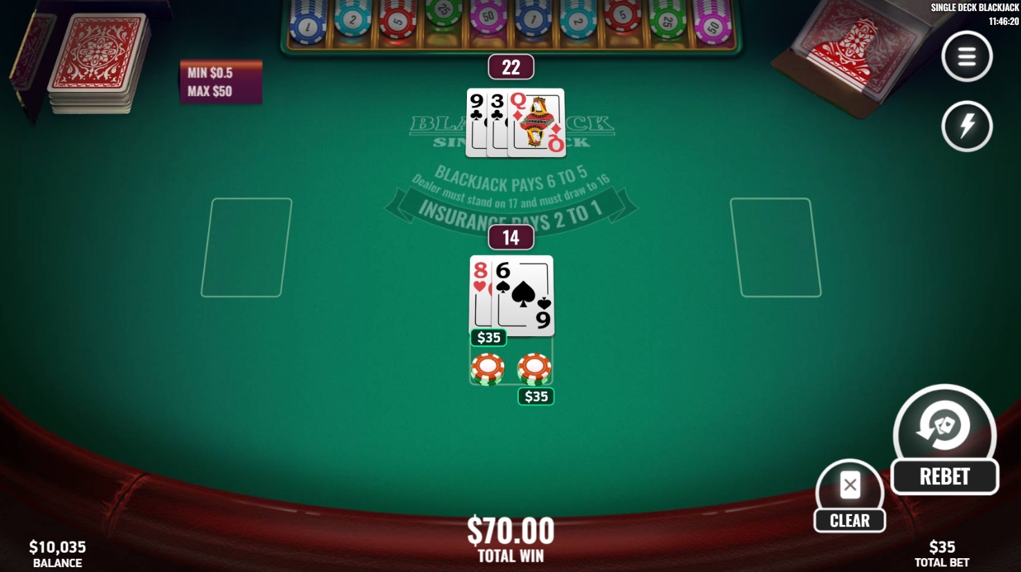 In practice, this cuts down on the number of decisions that need to be made, which means that more hands or rounds can be played in the same amount of time. The action stays short without losing its blackjack-like feel.