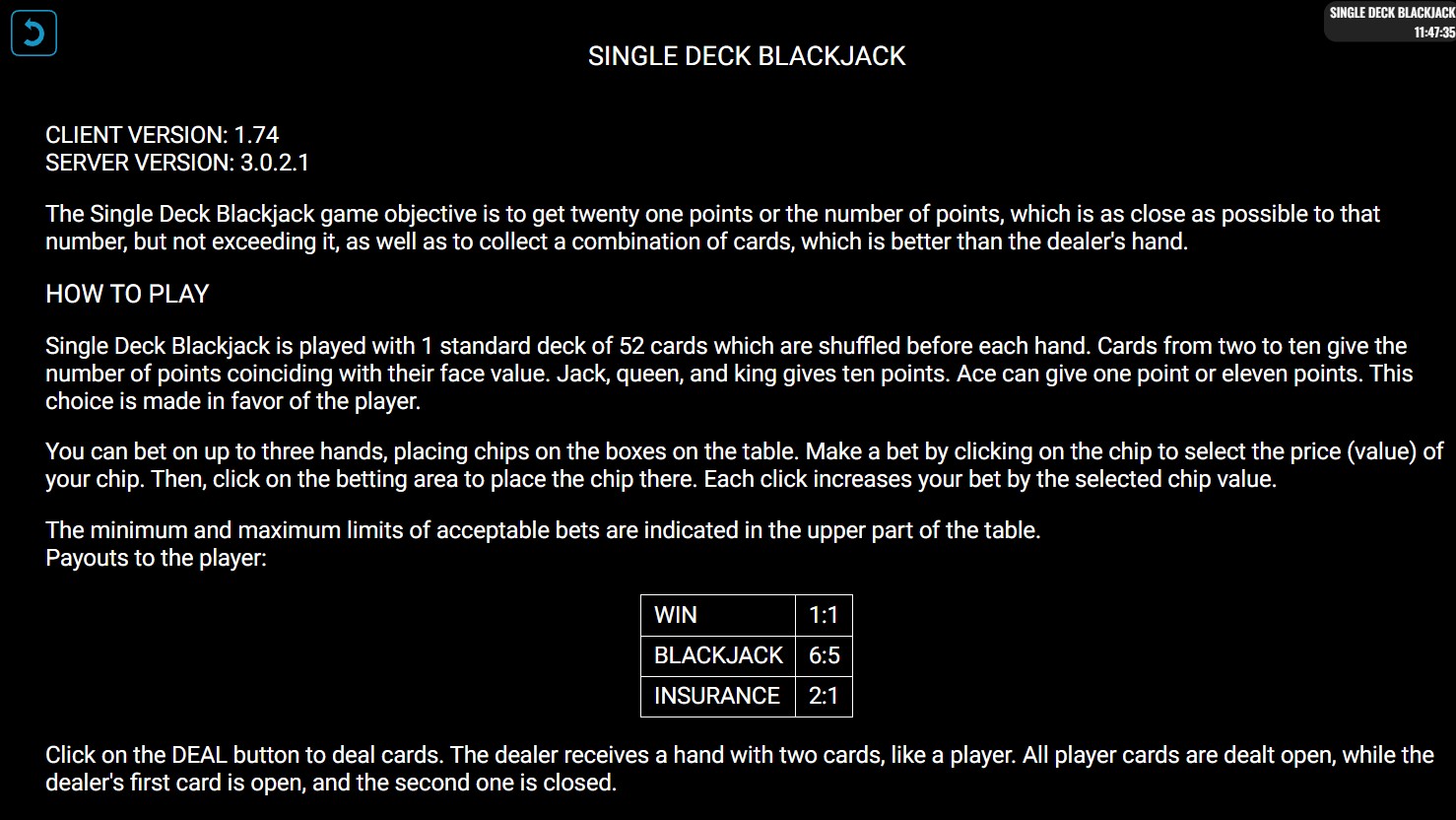Single Deck Blackjack Slot Review: This review looks at how the Single Deck Blackjack Slot brings the tension of the card table to a reel-based experience while still keeping the format easy to get into. Single Deck Blackjack's familiar rhythm guides the risk curve, but the structure is made up of spins, symbols, and other features that are meant to make decisions easier and turn rounds into quick ones with clear outcomes for both mobile and desktop users. A balanced sound profile, easy-to-read interfaces, and clear card graphics are what the Single Deck Blackjack Slot tries to achieve in terms of design. The developer seems to have made the game for a wide range of skill levels, with simple controls for casual play and customizable options for people who like to take things slowly.