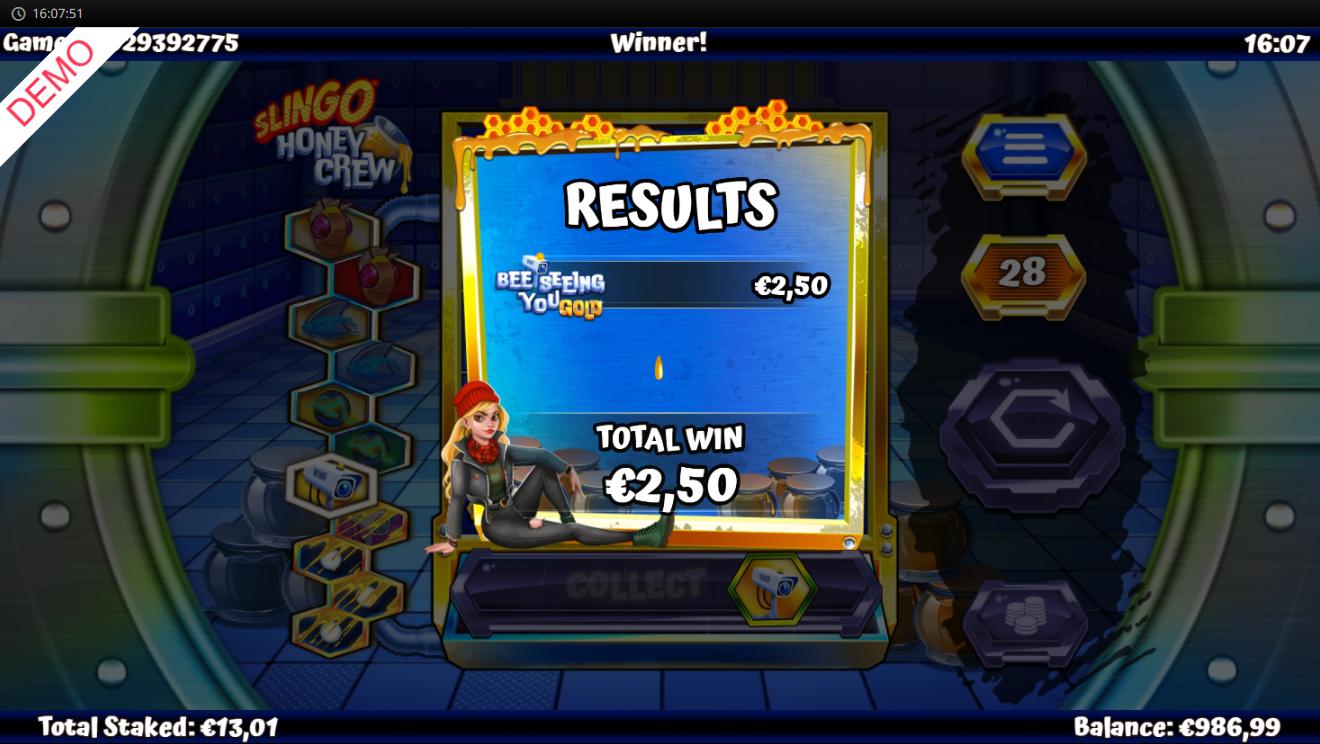 - Prepare a stake that matches your budget before each session. The Slingo Honey Crew Slot has a lot of options to suit both cautious testers and serious players.