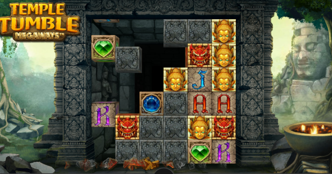 This release doesn't have any normal scatter symbols. It's not the number of symbols that sets off the free spins in Temple Tumble Megaways Slot; it's the removal of all block tiles from the board that does that. I like that way of playing because it connects progress to regular board interaction. This also keeps the focus on the tension between the regular symbols and the stone blocks instead of adding a scatter symbol to each reel strip. In real life, this means you should look for groups of wins that are next to each other and can take down several blocks in a row.