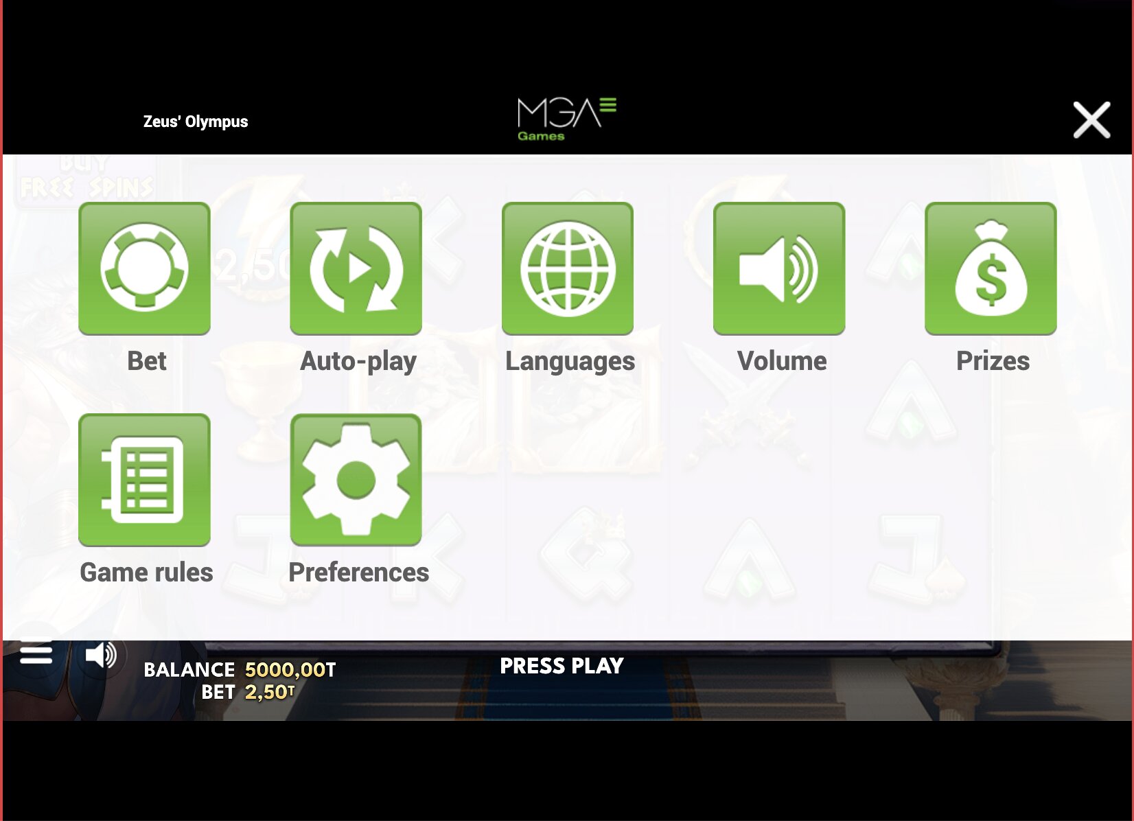 | Zeus Emblem | 2x bet | 5x bet | 15x bet | 50x bet |